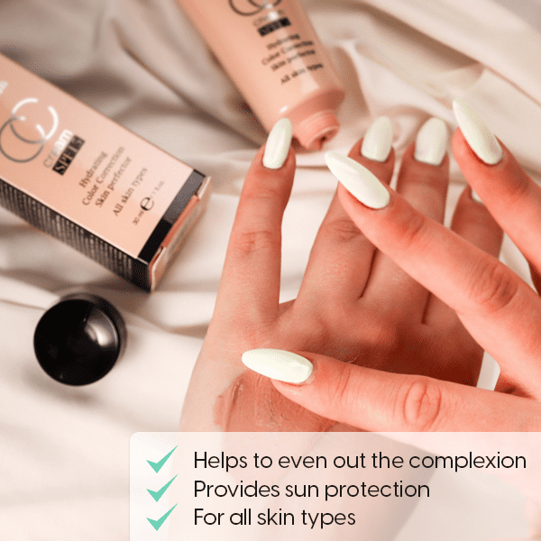 Daglig CC creme, der hjælper mod bleghed og rødme af huden. Fordel med let massage og nyd den jævne teint